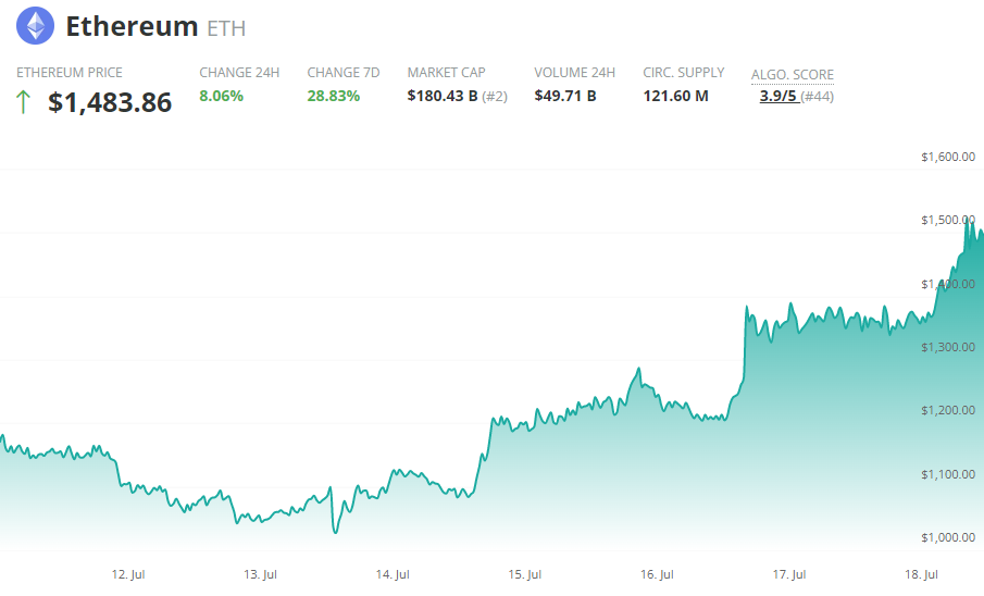 Ethereum Surges to $1,500 After Devs Outline Merge Roadmap
